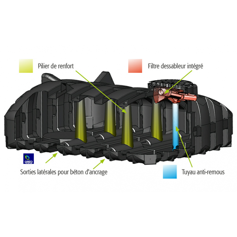 La cuve peut être utilisée seule ou en jumelage pour augmenter la capacité de stockage selon les besoins. Son système de filtration intégré garantit une eau propre et une utilisation simplifiée.