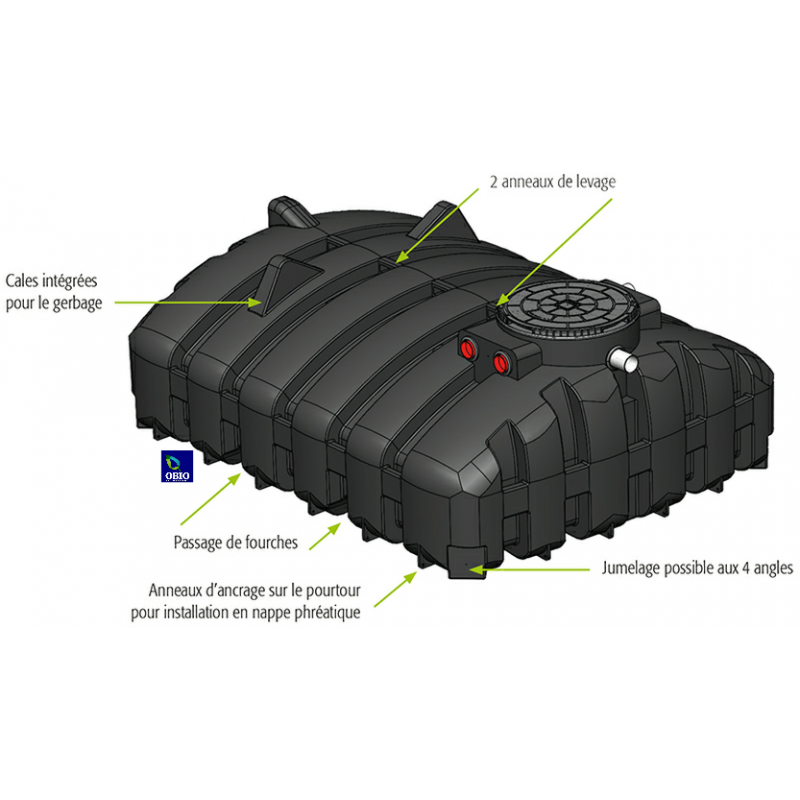 • Possibilité de jumeler plusieurs cuves pour augmenter la capacité de stockage.