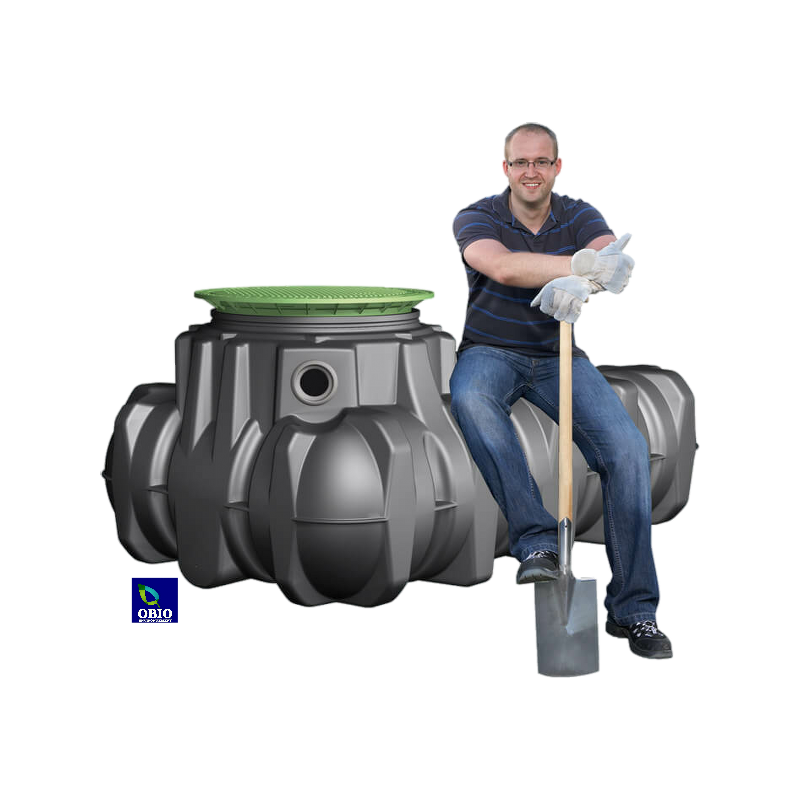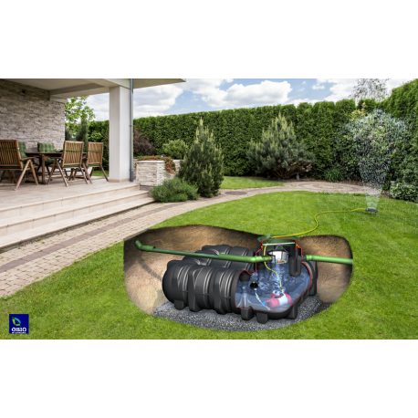 Filtre intégré à la cuve (pouvoir de récupération de 100 %). Prélèvement de l'eau facilité grâce au regard de raccordement.